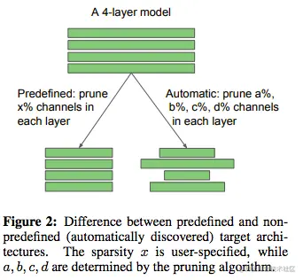 我们首先将网络剪枝方法分为两类。在pruning pipeline中,目标剪枝模型的架构可以由人(即预定义的)或剪枝算法(即自动的)来确定(见图2)。
