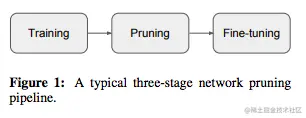 一个典型的剪枝算法通常有三个阶段,即训练(大型模型),剪枝和微调。在剪枝过程中,根据一定的标准,对冗余权重进行修剪并保留重要权重,以最大限度地保持精确性。