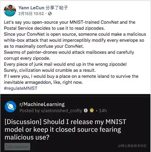 这番言论实在称不上严谨,甚至不能算 “严肃”,但作为 Facebook 首席科学家、卷积神经网络发明人和深度学习三巨头之一,LeCun 在如今的 AI 圈子里拥有巨大的影响力,他的这一表态迅速成为重磅砝码,压在了天平 “反对不开源” 的这边,不仅坚定了此前站出来表示反对的人的信念,还影响了不少后来人的观点。