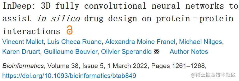 该研究以「InDeep: 3D fully convolutional neural networks to assist in silico drug design on protein–protein interactions」为题,于 2022 年 3 月 1 日刊载在《Bioinformatics》。