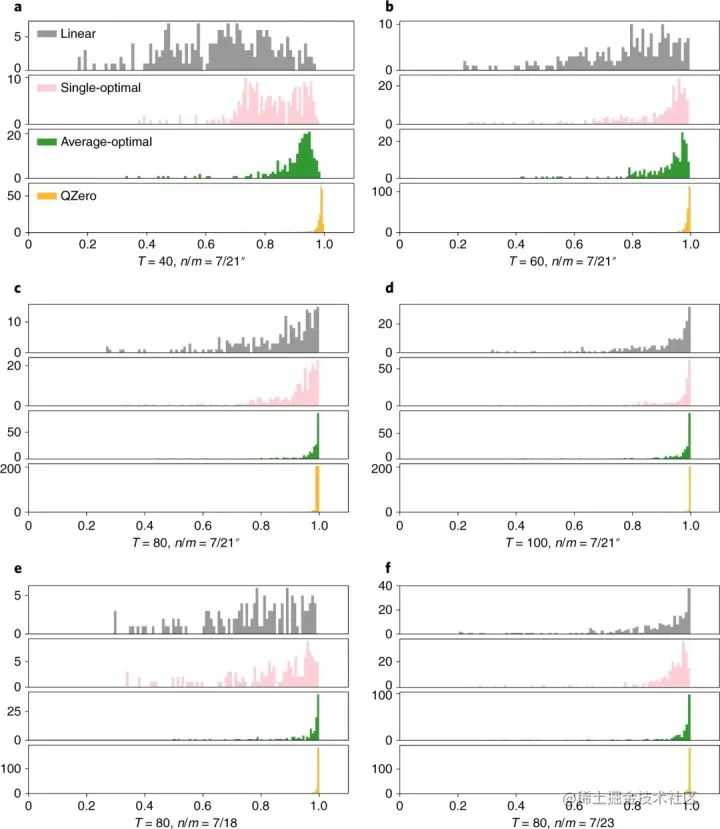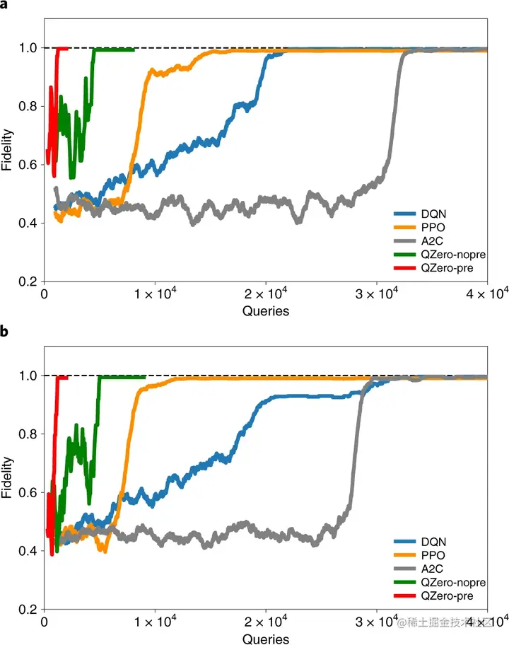 最后,研究人员将 QZero 的学习效率与其他流行的 RL 方法进行了比较。与 QZero 类似,这些 RL 方法能够找到全局最优值;然而,众所周知,训练典型的 RL 方法非常耗费资源。在这里,QZero 使用更少的计算资源实现了相同水平的性能。