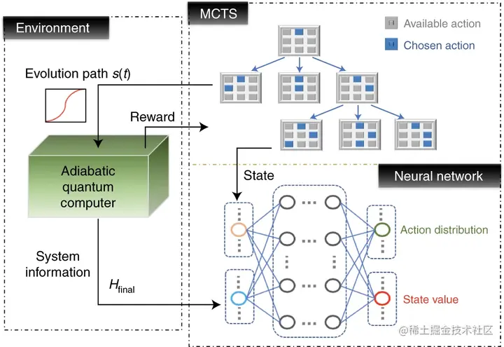 在这项工作中,研究人员提出了一个混合量子经典框架,利用强化学习(部分受到 MCTS 和 AlphaZero 的启发)来设计最优 schedule s(t)。
