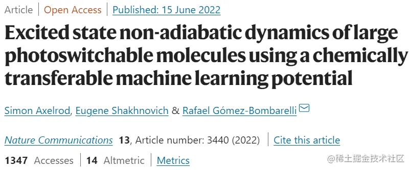 该研究以「Excited state non-adiabatic dynamics of large photoswitchable molecules using a chemically transferable machine learning potential」为题,于 2022 年 6 月 15 日发布在《Nature Communications》。