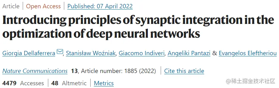 该研究以「Introducing principles of synaptic integration in the optimization of deep neural networks」为题,于 2022 年 4 月 7 日发布在《Nature Communications》。