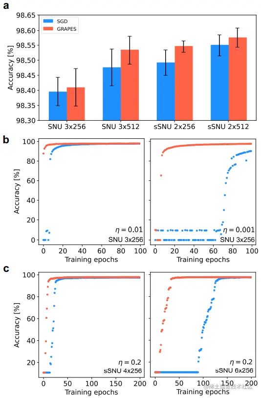 值得注意的是,他们的结果表明,GRAPES 提供了一种有前途的策略,可以减轻由硬件相关约束(例如噪声和精度降低)引起的性能下降。这些约束在许多方面反映了生物电路,因为突触传递受噪声影响并且神经信号被量化。有趣的是,GRAPES 保留了与生物过程的许多相似之处。因此,该团队认为 GRAPES 的生物学机制可能在克服与硬件相关限制相关的限制方面发挥核心作用。