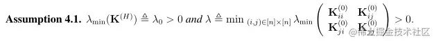 以上是网络宽度 m 趋于无限时的渐进 Gram 矩阵。我们特做出如下假设,该假设条件决定了收敛速度和过参数化数量。