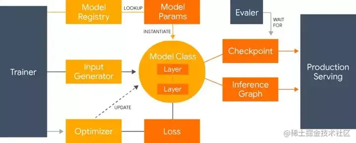 Lingvo 框架概览:概述了如何实例化、训练和导出模型以进行评估和服务。