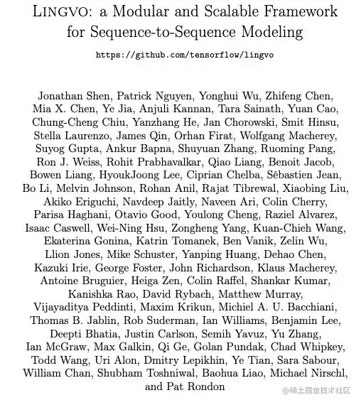 使用 Lingvo 的已发表论文列表