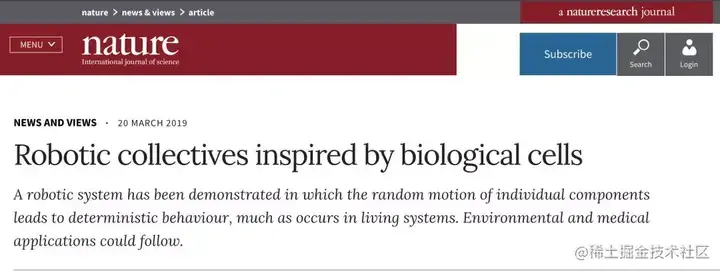 今日,Nature 封面刊登了一篇重磅研究成果 —— 仿生物细胞群体机器人问世!为开发大规模机器人系统提供全新途径。