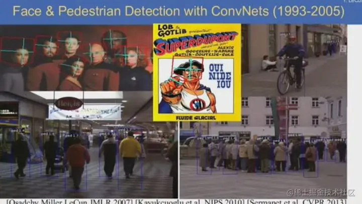 在上世纪90年代到2010年左右,出现了一段所谓“AI寒冬”,但我们没有停下脚步, 在人脸识别、行人识别,将机器学习用在机器人技术上,使用卷积网络标记整个图像,图像中的每个像素都会标记为“能”或“不能”被机器人穿越,而且数据收集是自动的,无需手动标记。