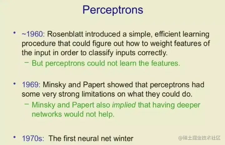 - 2007年:NIPS program committee拒绝了Hinton等人的一篇关于深度学习的论文。因为他们已经接收了一篇关于深度学习的论文,而同一主题的两篇论文就会“显得过多”。