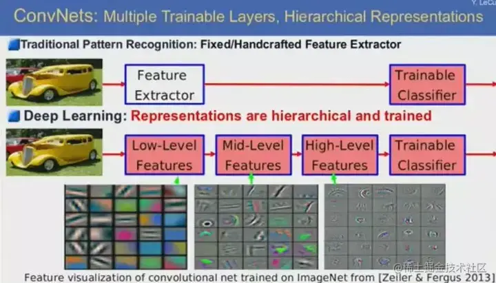 层级表示不仅适用于视觉目标,也适用于语音、文本等自然信号。我们可以使用卷积网络识别面部、识别路上的行人。