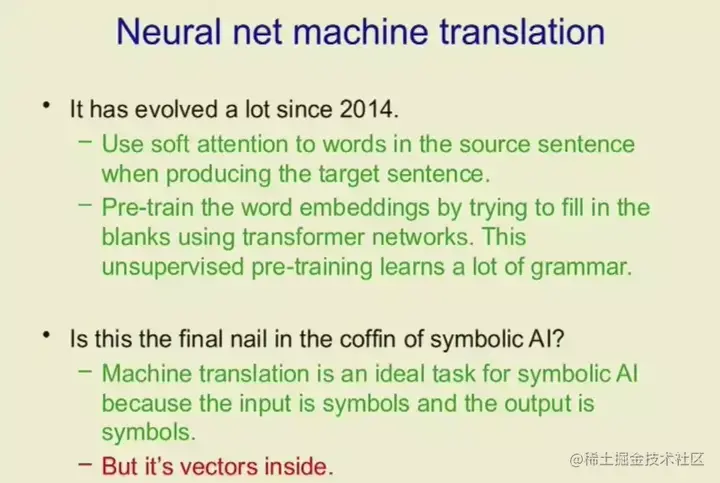 Hinton在演讲中讨论了一种全新的机器翻译方式。