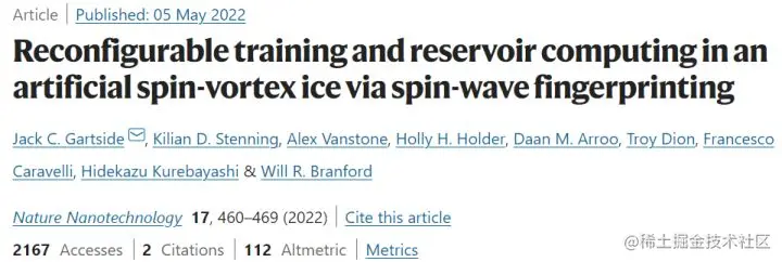 该研究以「Reconfigurable training and reservoir computing in an artificial spin-vortex ice via spin-wave fingerprinting」为题,于 2022 年 5 月 5 日发布在《Nature Nanotechnology》。