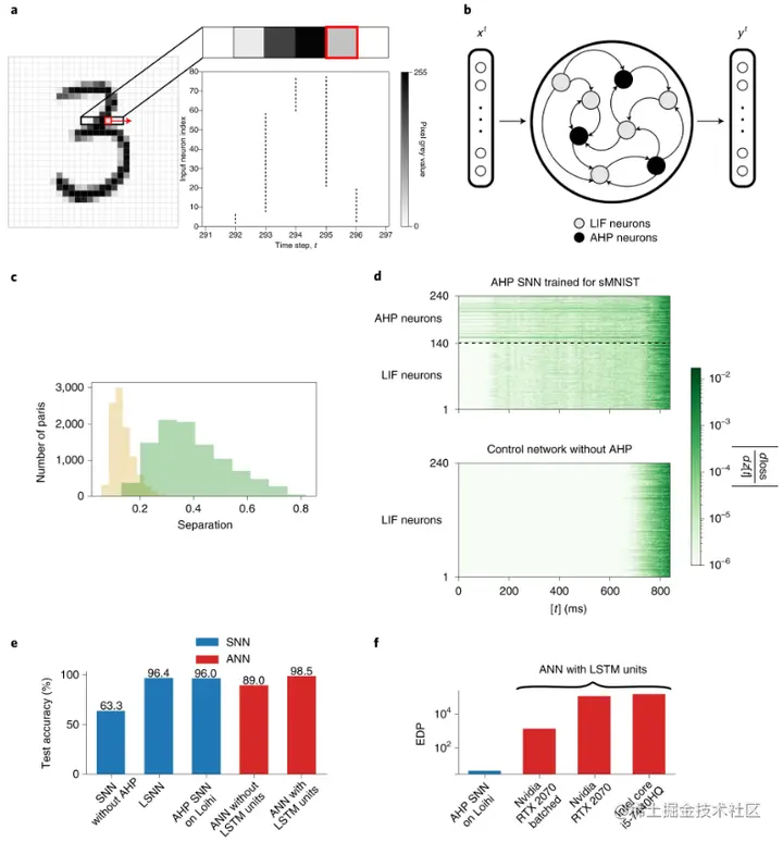 这减少了通常由计算单元和内存单元之间的流量引起的延迟和能耗。由此产生的用于解决基准时间序列分类任务 sMNIST 的基于尖峰的解决方案比 CPU 和 GPU 上 LSTM 网络的最先进实现的能效高三个数量级,同时实现更低的延迟和几乎相同的精度。