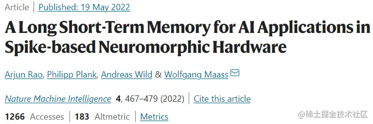 该研究以「A Long Short-Term Memory for AI Applications in Spike-based Neuromorphic Hardware」为题,于 2022 年 5 月 19 日发布在《Nature Machine Intelligence》。
