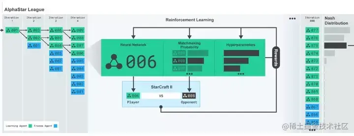 获得启动种子后的联赛式训练见下图(取自Deepmind blog)