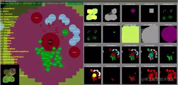 AI经由Blizzard和DeepMind联合创建的PySC2接口,与星际争霸2的游戏核心进行交互。每一步中,AI能够获取的游戏信息是一个矩形网格,网格的每个位置代表地图上的一个位置。每个位置上都有若干数值,代表此地的有效信息。