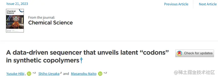 该研究以「A data-driven sequencer that unveils latent 「codons」 in synthetic copolymers」为题,发表在《Chemical Science》杂志上。