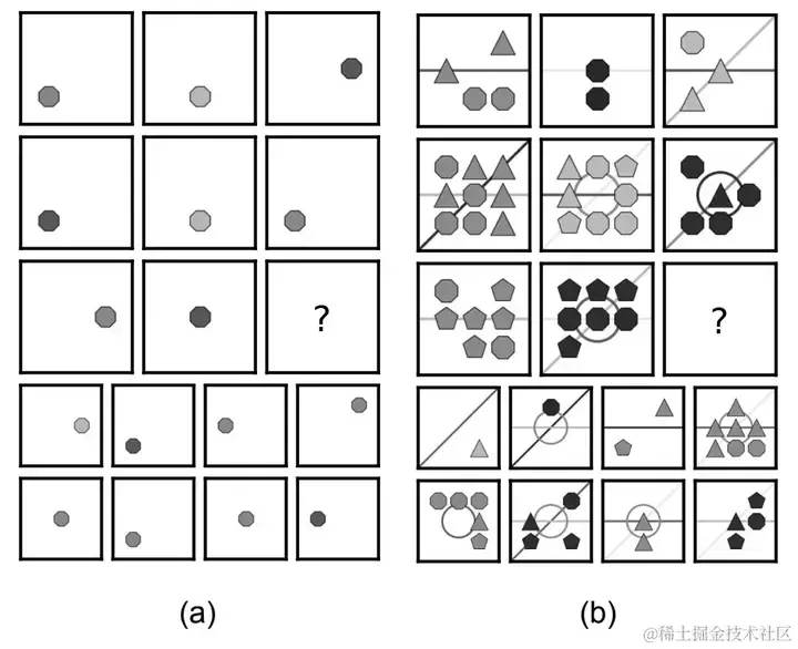 因此,要构建更好、更智能的系统,理解神经网络目前处理抽象概念的方式以及它们需要改进的地方,这非常重要。为此,我们从人类智商测试(IQ测试)中测量抽象推理的方法中获得了灵感。