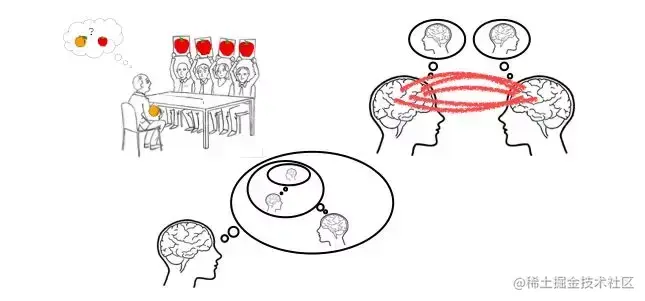 绝大多数的人都会在做事前对自己行为的结果进行某种程度上的预估,具体说,人会先预测自己的行为可能对他人影响,然后再进一步预测受了影响的他人将如何反过来影响自己,这是一个递归的过程。