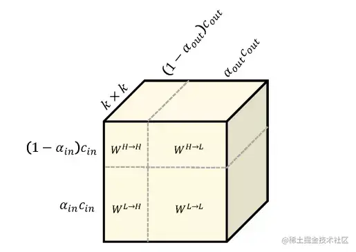 Octave Convolution kernel。k×k Octave 卷积核与普通卷积核等价,即二者具有完全相同的参数量。