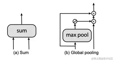 在步骤 4 中,我们在搜索空间中设计了两个二进操作,sum 和 global pooling,如图 4 所示: