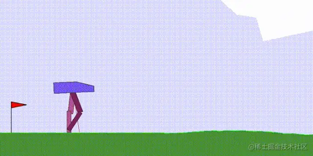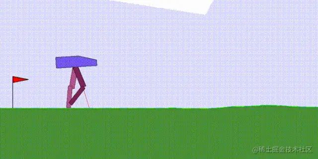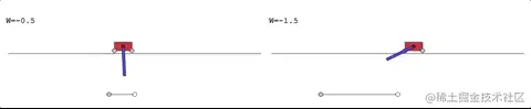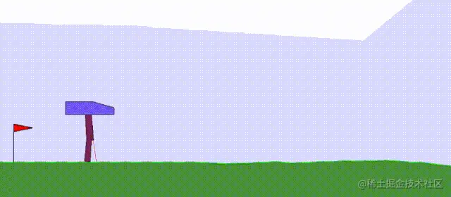 第一个任务:CartPoleSwingUp, 这是一个典型的控制问题,在给定的推车连杆系统下,杆必须从静止位置摆动到直立位置然后平衡,而推车不会越过轨道的边界。这个问题无法用线性控制器解决。每个时间步长上的奖励都是基于推车与轨道边缘的距离和杆的角度决定的。