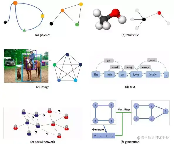 我们讨论了 GNN 在非结构场景中的应用,但我们没有找到从原始数据中生成图的最佳方法。在图像域中,一些研究可以利用 CNN 获取特征图,然后对其进行上采样,形成超像素作为节点,还有的直接利用一些对象检测算法来获取对象节点。在文本域中,有些研究使用句法树作为句法图,还有的研究采用全连接图。因此,关键是找到图生成的最佳方法,使 GNN 在更广泛的领域发挥更大的作用。