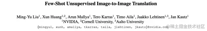 近期,英伟达、康纳尔大学和阿尔托大学联合发表了一篇文章 —— 小样本 (few-shot) 非监督图像到图像转换。