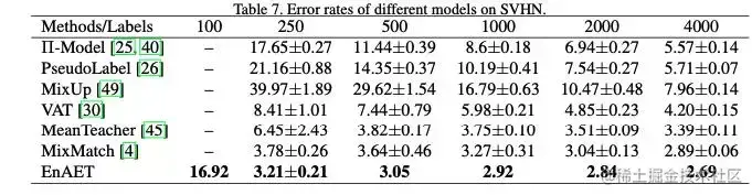在SVHN任务下,EnAET在经典250有标注样本下将错误率从3.78%进一步降到3.21%,具体对比如下: