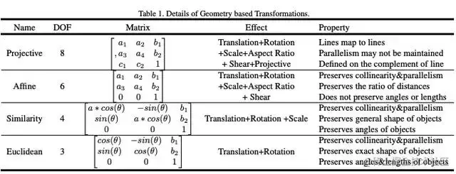 对于spatial变换而言,本文引入了四种经典的变换:projective, affine, similarity 和euclidean变换,详见表1. 对于non-spatial变换,引入了color,contrast,brightness和sharpen四种变换,并且将四种结合形成CCBS变换作为一种代表性的non-spatial变换加入EnAET框架。