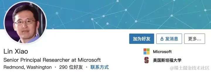 论文作者是雷德蒙德微软首席研究员 Lin Xiao。Lin Xiao 曾就读于北京航空航天大学和斯坦福大学,自 2006 年起就职于微软研究院。他目前的研究兴趣包括大规模优化的理论和算法,机器学习的随机和在线算法,并行计算和分布式计算。