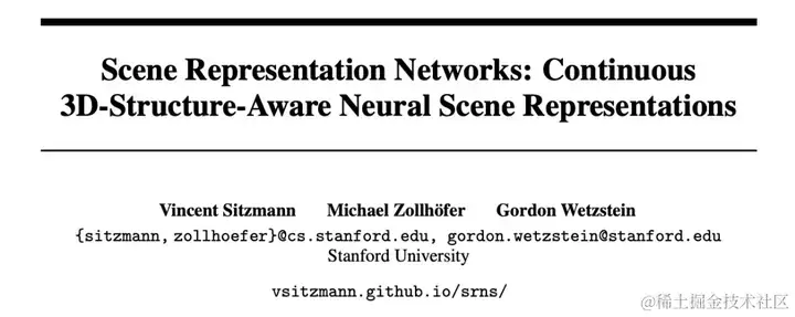 论文标题:Scene Representation Networks: Continuous 3D-Structure-Aware Neural Scene Representations