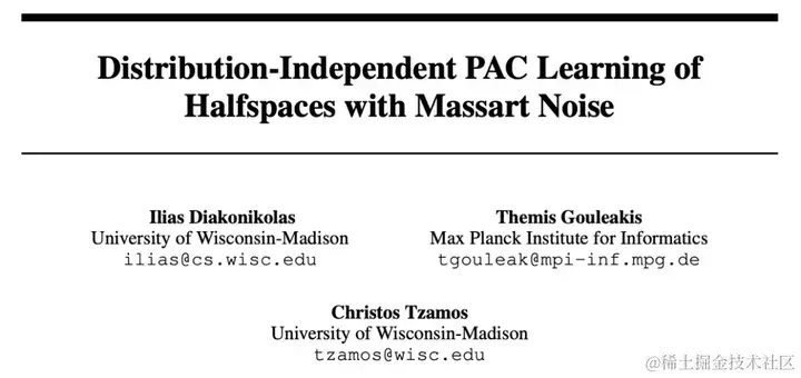 论文标题:Distribution-Independent PAC Learning of Halfspaces with Massart Noise