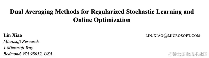 Dual Averaging Method for Regularized Stochastic Learning and Online Optimization(正则化随机学习与在线优化的对偶平均法)
