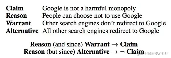 然而,很难在任何地方找到它,因为 warrant 通常是隐含的。因此,在这种方法中,机器学习者不仅必须使用 warrant 进行推理,还要发现它们。