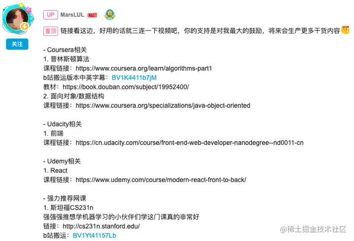 最后,MarsLUL 还分享了个人的学习路径,强烈推荐了一个普林斯顿大学的算法课。想转行的同学,可以作为参考。