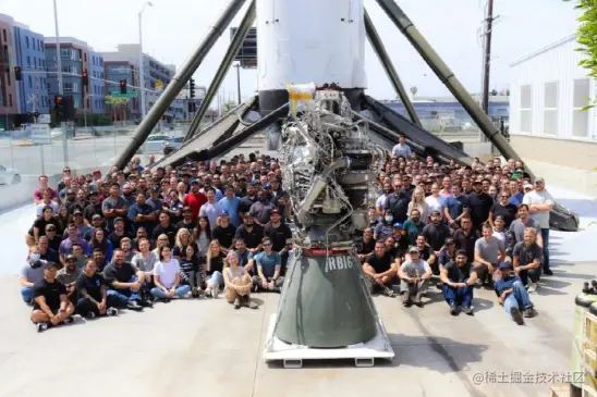 SpaceX 分享了一张照片,其员工在加州霍桑的公司总部与第 100 台猛禽发动机合影。