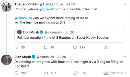 他在当时的一条推文中写道:「根据助推器4号的进展,我们可能会在助推器3号上尝试9号引擎点火。」