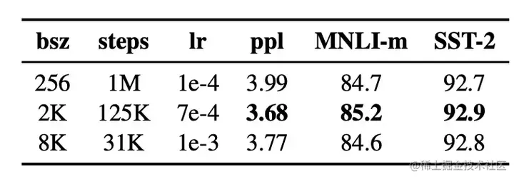 以往的神经机器翻译研究表明,当学习率适当提高时,非常大的 mini-batches 的训练既可以提高优化速度,又可以提高最终任务性能。最近的研究表明,BERT 也可以接受 large batch 训练。