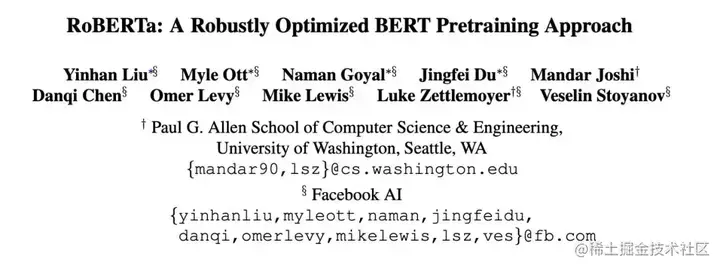 这项研究由 Facebook AI 和华盛顿大学的研究团队共同完成,而且第一作者是华人研究员 Yinhan Liu,此外还有 Jingfei Du 和 Danqi Chen。