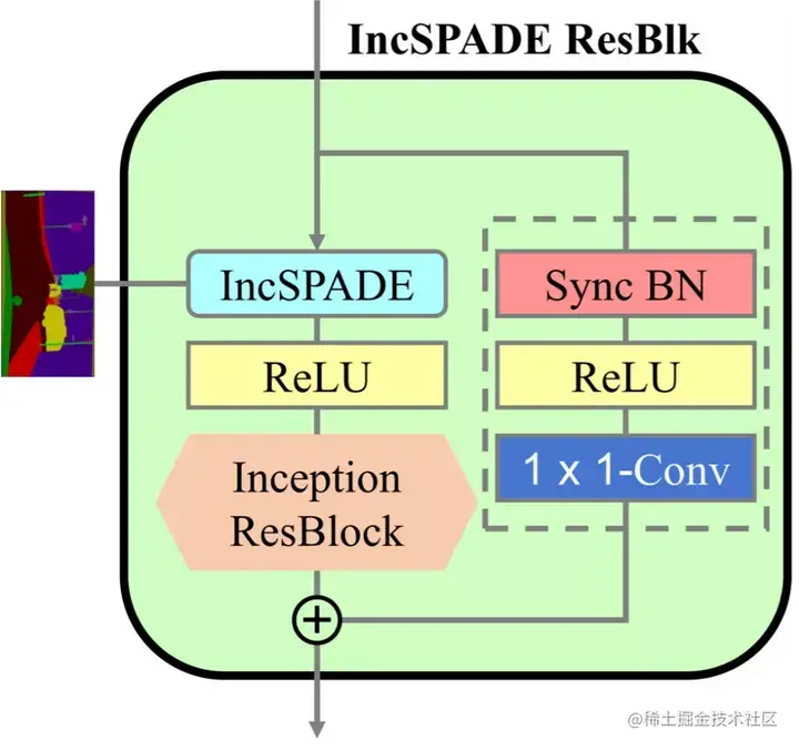 此外,主干中的第二个卷积层和分支中的卷积层可以使用普通的归一化层,而不需要使用计算量很大的SPADE模块。