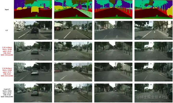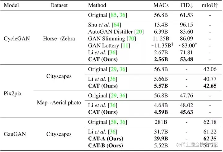 而且,对于高复杂度的大型网络(如GauGAN),传统方法通常导致性能损失更为明显。