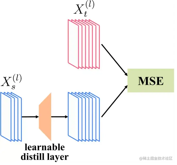 文献中引入一个额外的可训练的线性层,将学生模型的特征映射到导师模型特征的空间中。