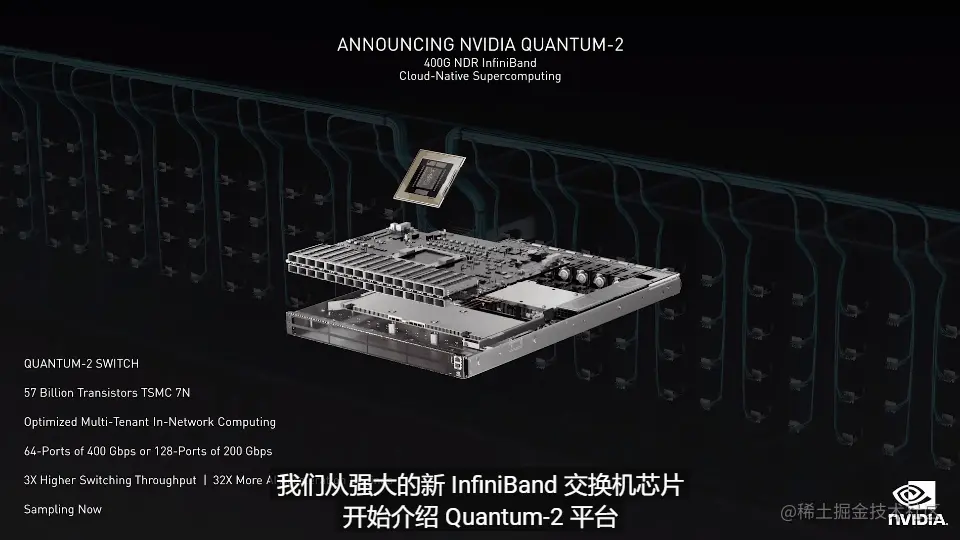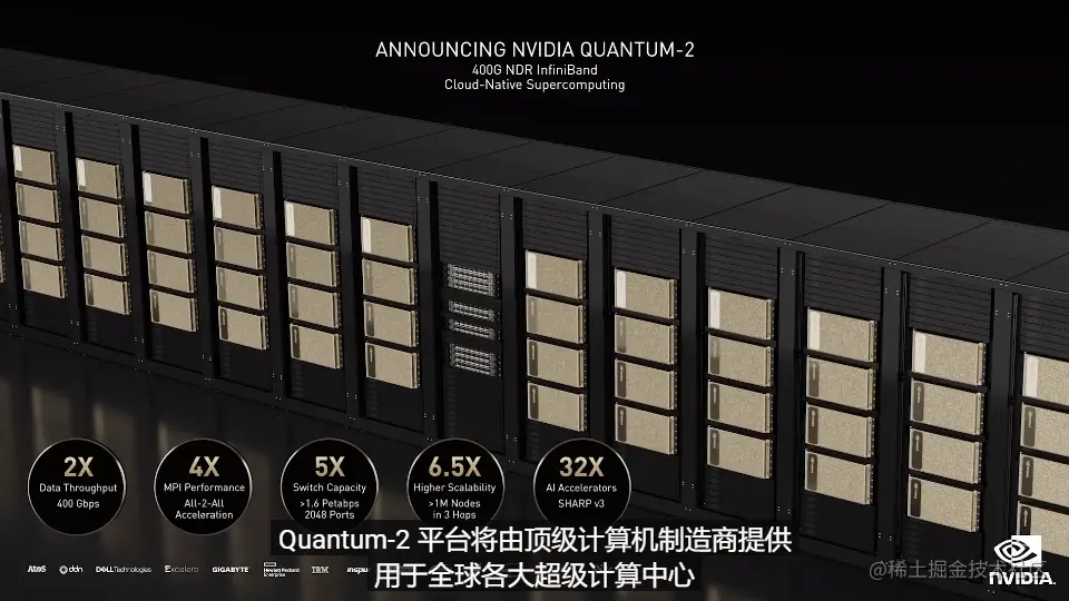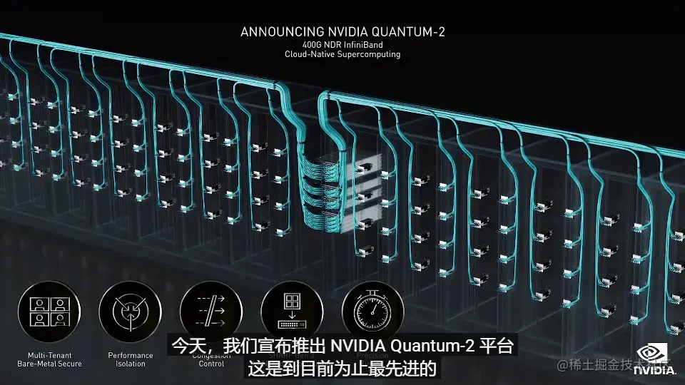 英伟达还推出了下一代 InfiniBand 网络平台Quantum-2,该平台可提供云计算提供商和超级计算中心所需的极致性能、广泛的可访问性和强大的安全性。