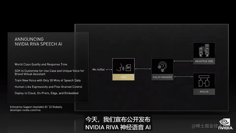 Avatar的语音识别基于英伟达Riva,这是一个软件开发工具包,可以识别多种语言的语音。Riva还被用来利用文本到语音功能生成类似人类的语音反应。