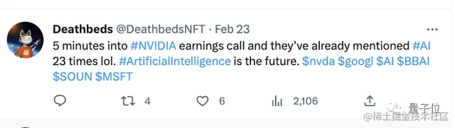 毫无疑问的是,AI成为整场财报电话会议的关键词。有贴心的网友做了一个粗略的估计:五分钟说了23次AI。