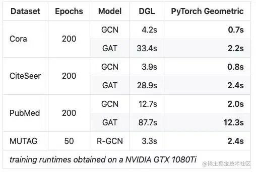 此外,与其他深度图神经网络库相比,PyTorch Geometric 的速度更快:
