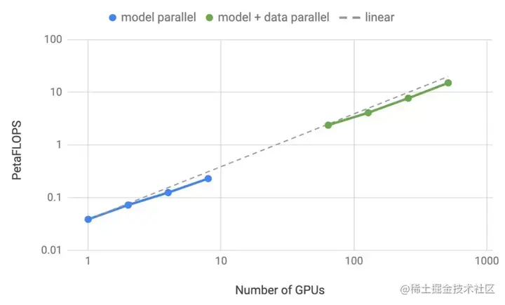在此过程中,我们成功地突破了传统的单 GPU 训练的限制,实现了一种简单而高效的模型并行方法,只需对现有 PyTorch transformer 实现进行少量有针对性的修改。